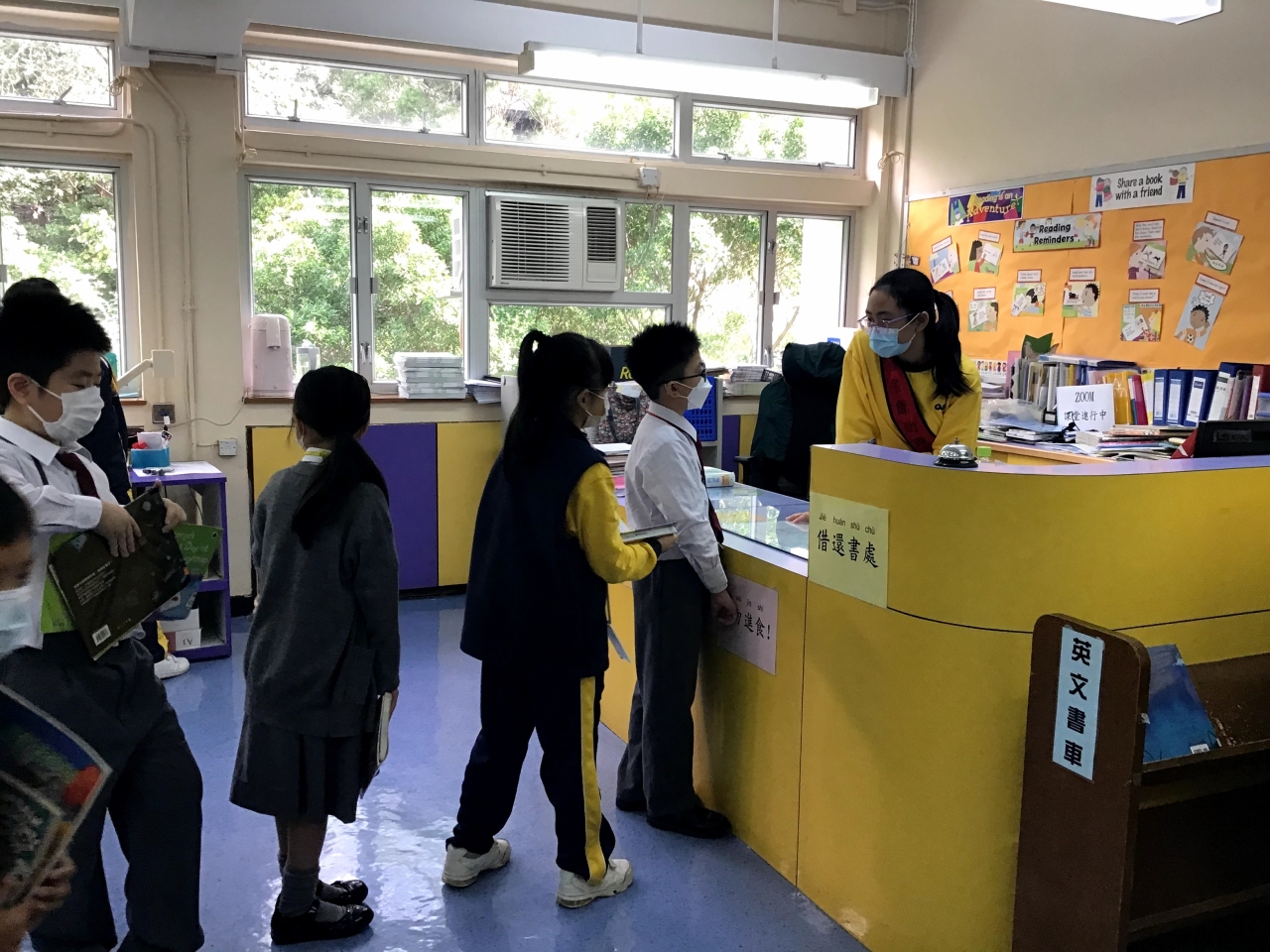 圖書館助理員亦會被挑選及訓練成為伴讀大使,於星期一午休時段向一、二年級學生講故事,陪伴低年級同學選擇合適的圖書。