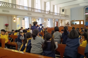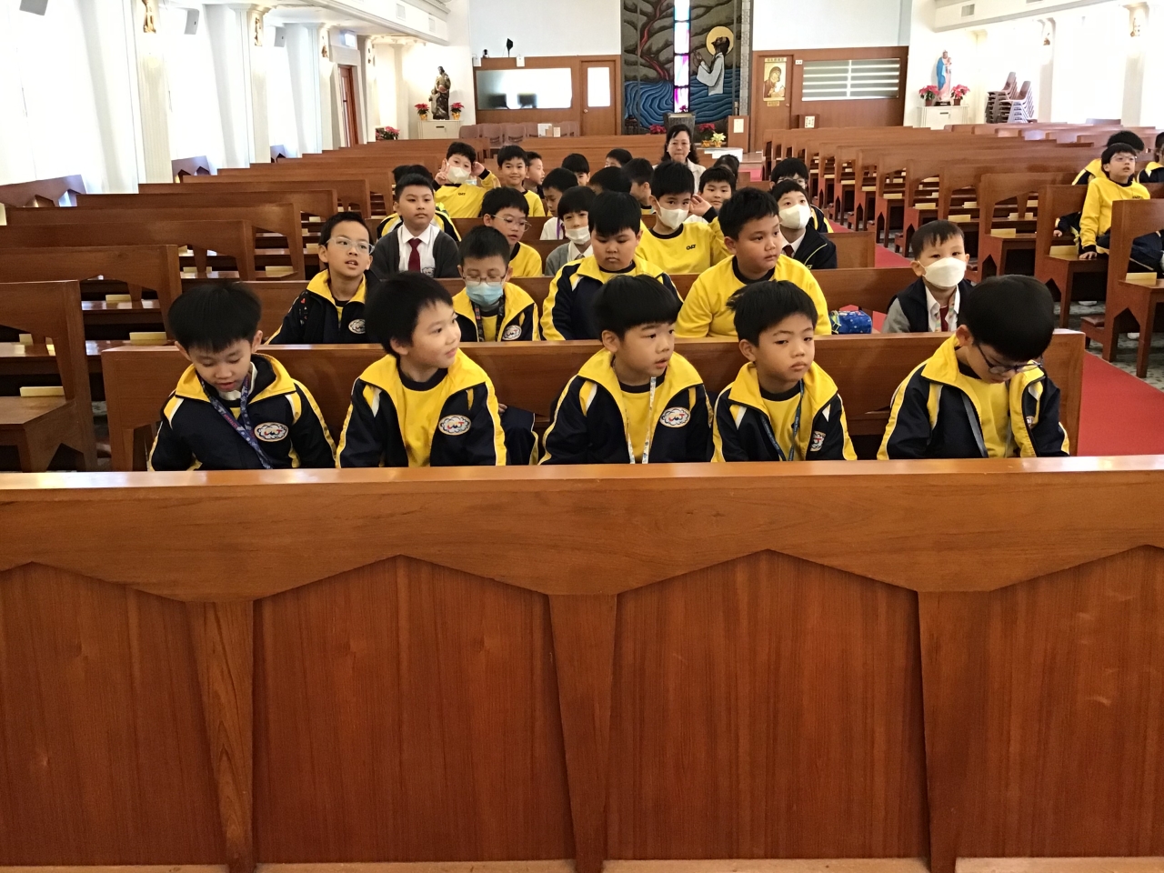 本校小若瑟團及基督小先鋒成員前往九龍灣聖若瑟堂進行朝聖活動。希望學生在聖堂內能感受到天主的臨在,加深認識主保大聖若瑟的德行及聖堂的特色,並且鼓勵學生時常祈禱,實踐好行為。我們在聖堂內透過祈禱、導賞和聖詠獻唱,與天主一起,感受天主的愛。