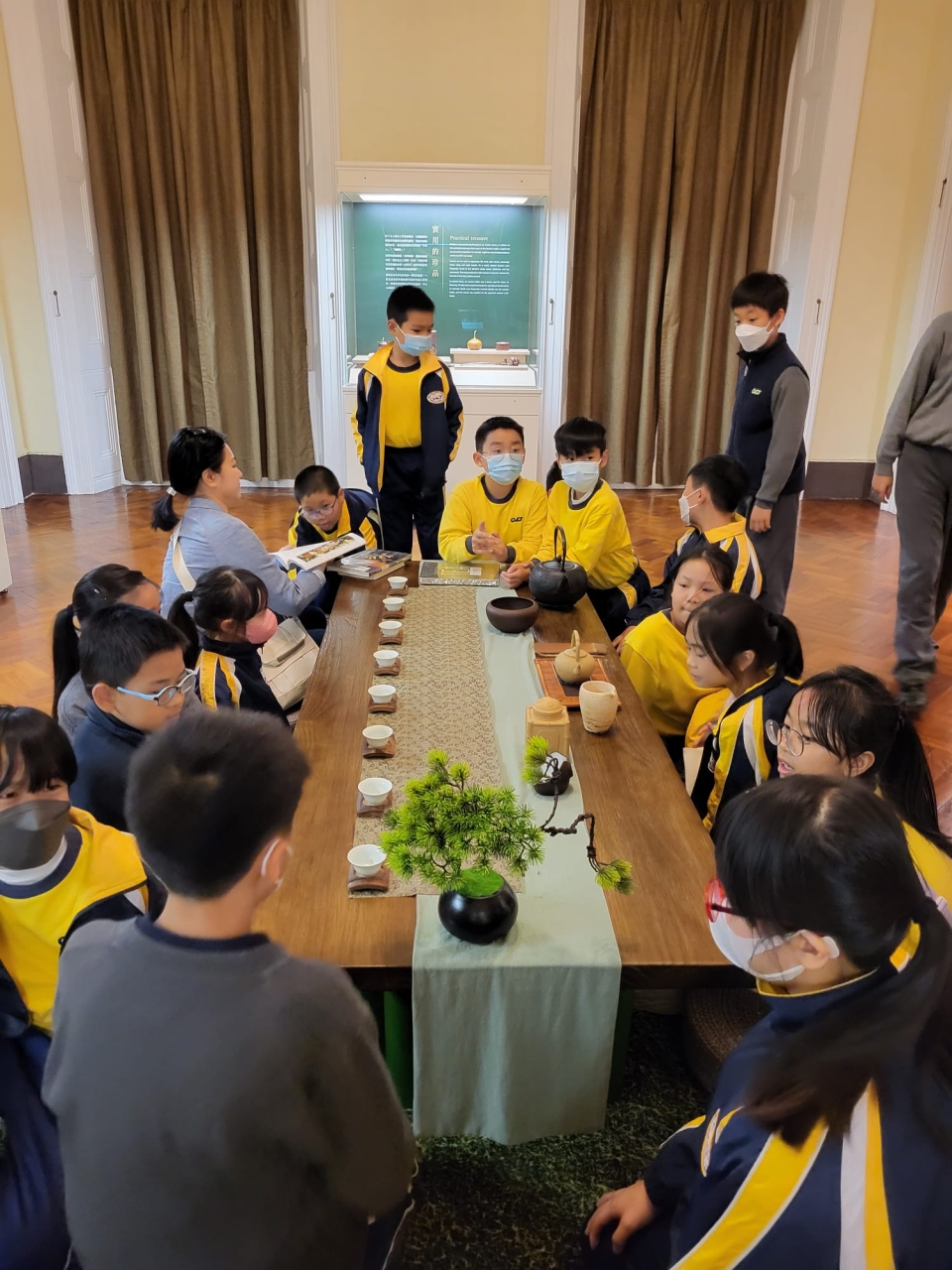 是次參觀配合五年級視藝課程(中國茶文化),希望藉此參觀,讓學生認識中國人的喝茶文化以及中國傳統雕塑文化,並探討它的設計與生活上的關係,從而欣賞不同形體的茶具。同學對於不同茶具獨特造型很感興趣,他們更有機會親身體驗茶席設計,加深了解中國茶文化。